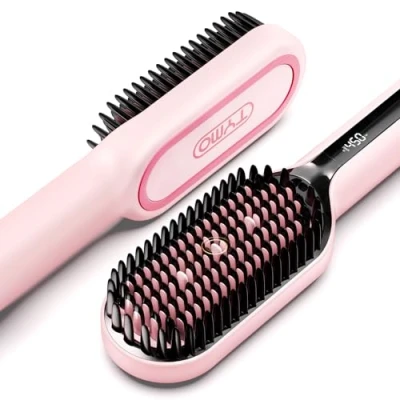 INCREDIBLE EFFECTIVENESS - With 2x denser bristles which grab hair tighter, TYMO hair straightener brush is more effective on thin hair, and creates straighter result on thick curly hair. Reaching more hair with every pass, the straightening brush is a huge time saver in a morning rush. UPGRADED HEAT PRECISION - T-sensor technology monitors heat by millisecond, and intelligently adjusts to your unique style. Combined with PTC heating and 16 temperature settings, the heated brush ensures no heat loss for effective styling, and best protects your hair against overheating damage. STYLING IN A FEW STROKES - Don’t worry if you are not hair savvy, the brush straightener works as a flat iron and a brush in one to simplify the smoothing process. All it needs is a slow-paced stroke from root to tip. Plus, the straightening brush can avoid the flat, lifeless appearance that traditional flat irons can sometimes create. GORGEOUS SMOOTHNESS AND SHINE - 10M+ ions reduce frizz and boost shine. Tourmaline ceramic bristles glide through hair with no snagging or breakage, making second-day hair look the best it has ever looked. DESIGNED FOR COMFORT & SAFETY - TYMO hair brush straightener has an ergonomic and anti-scald design. Buttons are located at the end of the handle to avoid accidental touch so you can style at any angle. Contoured handle allows secure and comfortable grip. The tip of bristles and side bristles are cool to prevent scalp and hand burns.