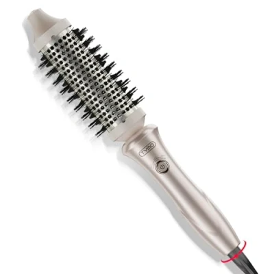 Flexi-Fit Tech: TYMO STYLUX 1.5-inch thermal brush with adjustable nylon bristles minimize hair pulling, easily gliding through without tugging. The staggered bristle design ensures even hair distribution around the barrel, optimizing heat application and providing a secure hold for styling. Then, thermal blowout brush is equipped with a 30mins auto shut-off to guarantee security. [Please note: TYMO thermal brush is not a hair dryer brush and cannot dry hair.] EFFORTLESS VOLUME, INSTANT BLOWOUT: Skip the hassle of straightening and curling separately. With the 1.7-inch ceramic barrel thermal brush, you can achieve a luxurious, bouncy blowout with just one stroke. TYMO STYLUX heated round brush features dual voltage (100V-240V) for worldwide use and weighs only 356 g, making it perfect for styling. Unlike round brush or blow dryer brush, TYMO STYLUX thermal brush delivers a fresh blowout in one stroke—no hot air needed. NO FRIZZ & ADD SHINE: TYMO curling brush features a ceramic barrel that minimizes cuticle damage while delivering salon-grade nourishment to your hair. Instantly transform frizzy strands into smooth, soft, and shiny hair. Say goodbye to flat, lifeless locks and embrace a refined, layered look with naturally voluminous tresses that radiate vitality. With its 360° swivel cord and comfortable handle, effortless styling from any angle is made easy, allowing you to achieve salon-quality results at home. DAMAGE WORRY-FREE: Heated round brush is equipped with dual PTC heating elements, allowing it to heat up in just 20 seconds. PTC temperature control system ensures precise and stable heat, protecting your hair from excessive damage. Each side of the brush features heated hard bristles, maintaining a consistent barrel temperature to achieve the ideal styling heat for your hair type. Additionally, thermal hair brush is equipped with a temperature memory function that makes styling even easier. ONE TOOL, MULTIPLE LOOKS: More than just a blowout brush – it simplifies your hair routine by straightening, creating loose curls, and exploring countless styles. With this versatile tool, you no longer need to visit a professional salon or spend a lot on styling. The 3-level temperature adjustment is designed to cater to hair types ranging from 2A to 4A, ensuring the perfect look for every hair type.
