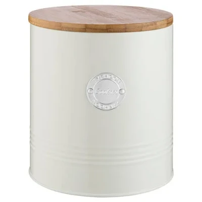 Harts of SturThis Typhoon Living 3L Cream Cookie Storage Tin is part of a range of stylish and contemporary co-ordinating storage solutions.Manufactured from durable colour coated steel with a seamless construction for added strength, this Cookie Storage Tin has a 3 litre storage capacity.The lid, which is made from sustainably sourced Bamboo, has an air tight seal to keep contents fresh.Mix and match with other colours in the range or keep to the same colour for a co-ordinated look.