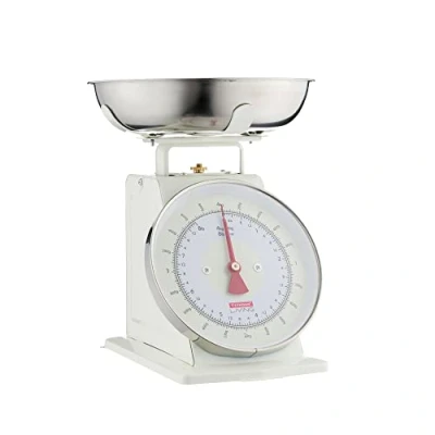 Amazon MarketplaceTyphoon living scales in cream features a clear and easy to read dial face. The Precision mechanism has 25 grm intervals and measures up to 4kg. has a Large capacity stainless steel bowl. Perfect for baking, cake making and general use Brought to you by Typhoon with over 30 years of Offering a wide range of beautifully designed products at affordable prices