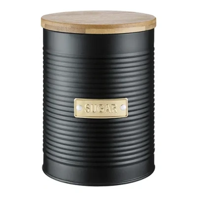 Harts of SturThe Typhoon Otto black sugar storage is hardwearing and made from tinware in an attractive ribbed design finished in a matt black colour. The lid is made from sustainable bamboo and provides an airtight seal, keeping the contents dry and fresh. Perfect for adding modern style to your kitchen and suitable for everyday use. Part of a matching collection and is great as giving as a gift.