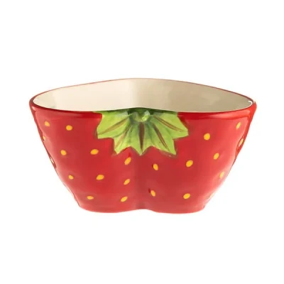 The Typhoon World Foods Strawberry Bowl is beautifully adorned in a vibrant red hue, featuring intricate yellow seeds and lush green leaves, all meticulously hand-painted.Crafted from ceramic and coated with a robust, colored glaze, the bowl is designed to withstand the demands of daily use, resisting chipping and cracking.The 230ml capacity is ideal for serving desserts, nibbles or dips whilst adding a splash of colour to your table setting.Size: 6(H) x 12(W) x 12(D)cm.