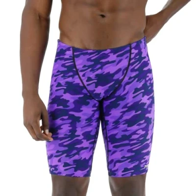 TYR Men's Durafast Elite Athletic Jammer Swimsuit Swim Trunks, Purple Camo, 26