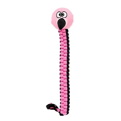Scoubidou braided rope for extra durability Padded head with built-in squeaker/squeaker for more fun while playing Ideal for games for two or as a single toy: toy for pulling, throwing or chewing FUN TOY This 40cm flamingo rope will accompany you in all your game games Eye-catching and visible from a distance: hot pink and black