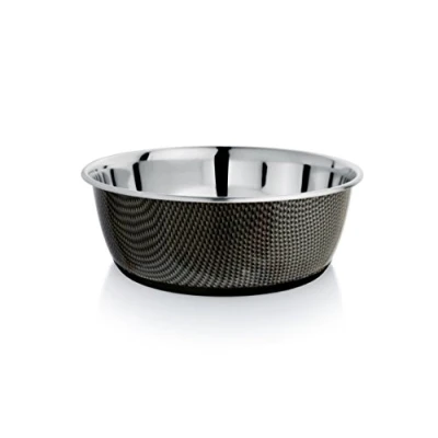 Light and resistant stainless steel bowl Elegant, shiny gray solid color Non-slip bottom for more stability Capacity: 950ml, diameter 16cm For cat and dog, and pets