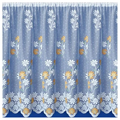 Tyrone Textiles Ltd Primrose Coloured Floral Lace Net Curtain. Sold by the Metre (Yellow/Orange/Merigold, Drop 63" / 160cm)