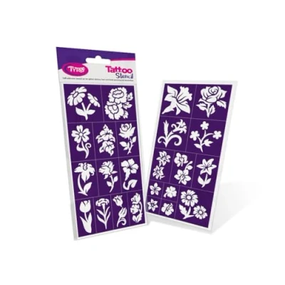 TyToo Glitter Tattoo Stencil Set Reusable Templates for Children & Adults EU Design, Skin Friendly, Perfect Parties, Children's Make Up Body Painting (Flowers)