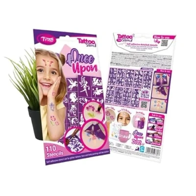 TyToo Glitter Tattoo Stencil Set Reusable Templates for Children & Adults EU Design, Skin Friendly, Perfect Parties, Children's Make Up Body Painting (Once Upon)