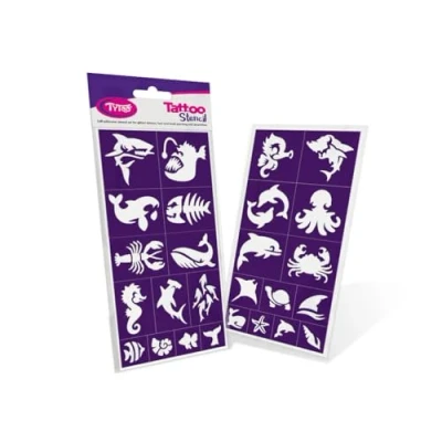 TyToo Glitter Tattoo Stencil Set Reusable Templates for Children & Adults EU Design, Skin Friendly, Perfect Parties, Children's Make Up Body Painting (Sea Animals)