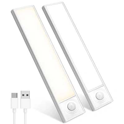 TZFTZ 2 Pack Under Cabinet Kitchen Lights LED, Motion Sensor Cupboard Lights, USB C Rechargeable Dimmable Strip, Wireless Light for Wardrobe Closet Stairs Shelf