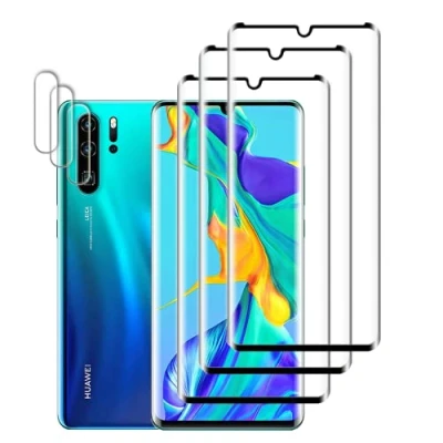 Tzstz 3 + Pieces Tempered Glass Screen Protector for Huawei P30 Pro, 3D Full Coverage Protector, Bubble Free, Anti Scratch, HD Film
