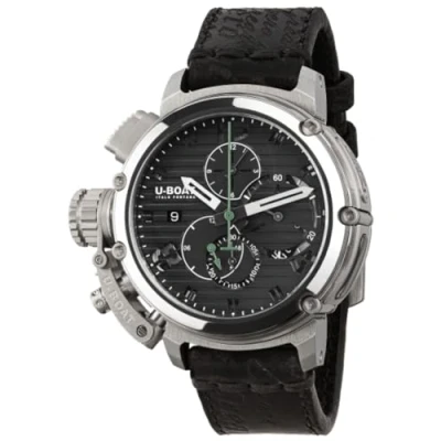 U Boat Chimera 46 mm Chrono SS Black Men's Analogue Automatic Watch with Calfskin Leather Strap 9592