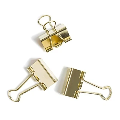 72 count medium binder clips Classic gold finish with matching gold prongs Medium size can hold up to 145 sheets of paper Perfect starter pack for every desk or student Packaging is made from FSC certified paper. FSC certificate #TT-COC-007191