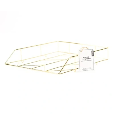 Add sophistication and style to your desk or office with this unique wire letter tray in gold Stackable design allows for you to maximize desk space Quickly store mail, letters, file folders and more keeping everything in view and within reach Letter tray is 2.08" H, 9.72" W, 12.12" D U Brands gold colored wire desk accessories add a modern touch to any office or home desktop