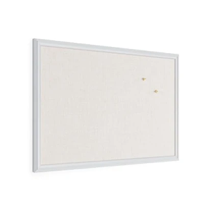 SHARE, CREATE, COLLABORATE: Elevate your environment and share your ideas, inspiration, and important notes effortlessly with this 76x51 cm notice board that adds a contemporary touch to any office, classroom, or home decor UPGRADE YOUR WORKSPACE: This board features a white farmhouse wood style frame and an elevated linen surface that add a touch of style and functionality to any space; includes two push pins; the top choice home office decor; includes two push pins HASSLE-FREE MOUNTING: Hang this board effortlessly with the included hardware and instructions; mounts both vertically and horizontally; less time spent on installation means more time to showcase your creativity and work on your perfect vision board PRISTINE BULLETIN: Firmly grips and holds push pins and thumbtacks in place; the dense board backing material conceals holes, ensuring a clean and pristine surface even after repeated use; it's the secret to maintaining a picture-perfect presentation DESIGNED BY U: We are a company of designers, innovators, and trendsetters; a team of individuals who greatly respect the process, we remain passionate about providing well-designed products that will help you feel inspired