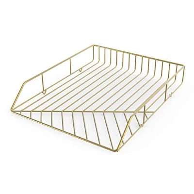 U Brands Metal Paper Tray, Letter Size, Desktop Accessory, Vena Collection, Gold, 3233U03 12