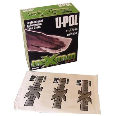 General description U-POL High-Performance Tack Cloths are designed to prepare surfaces before painting. These synthetic cloths effectively eliminate dust, dirt, and contaminants, ensuring a clean, smooth, and mark-free surface for optimal paint adhesion. Technical specifications Pack of 50 cloths Type: Tack cloths Part number: TRAG/50 EAN: 5010796106737 Installation Gently wipe the surface with the tack cloth to remove dust and particles. Usage Ensure the surface is dry and free of loose debris. Wipe the surface with the tack cloth until it is clean and free of dust. Other information