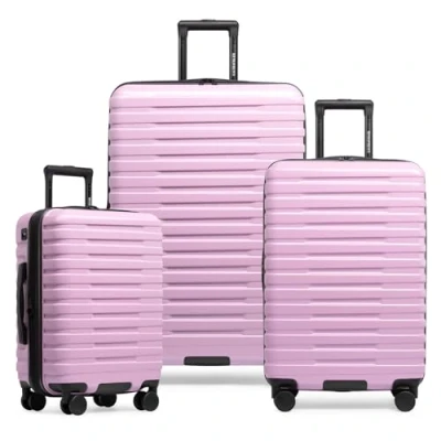 U.S. Traveler Boren Polycarbonate Hardside Rugged Travel Suitcase Luggage with 8 Spinner Wheels, Aluminum Handle, Lavender, 3 Piece Set, USB Port in Carry On,