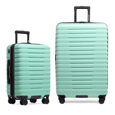 U.S. Traveler Boren Polycarbonate Hardside Rugged Travel Suitcase Luggage with 8 Spinner Wheels, Aluminum Handle, Mint, 2 Piece Set, USB Port in Carry On,