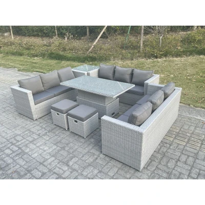 U Shape Lounge Rattan Garden Furniture Set Adjustable Rising Lifting Table Dining With Side Coffee Tea Stool Fimous