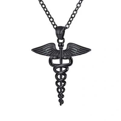 ✿ Base material: Stainless Steel. Black Plated. Nickel free. ✿ Design Inspiration: Caduceus, Two snake/ophidian helix on truncheon with wings design pendant necklace. ✿ Size: Pendant: 33mm * 44mm, Pendant thickness: 4mm, Rolo chain width: 2mm, Chain length: 50cm+5cm (Resizable). ✿ Perfect Gift: Comes in a gift box and a pouch. Gift for Her/Him/Mother/Father/Sister/Brother/Family/Friend/Teacher, Birthday Gift, Valentine's Day, Thanksgiving Day, Holiday Gift, Anniversary Gift, Mother’s Day Gift, Father’s Day Gift, Christmas Gift, Halloween Gift. ✿ Customer Support: Any problem, Please feel free to contact us, We will reply you within 24 hours.