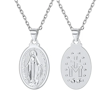 U7 Miraculous Medal Virgin Mary Pendant Necklace Womens Girls Sterling Silver Rolo Chain Christmas Gift Necklaces Religious Christian Cross Jewellery
