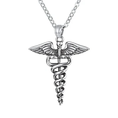 ✿ Base material: Stainless Steel. Nickel free. ✿ Design Inspiration: Caduceus, Two snake/ophidian helix on truncheon with wings design pendant necklace. ✿ Size: Pendant: 33mm * 44mm, Pendant thickness: 4mm, Rolo chain width: 2mm, Chain length: 50cm+5cm (Resizable). ✿ Perfect Gift: Comes in a gift box and a pouch. Gift for Her/Him/Mother/Father/Sister/Brother/Family/Friend/Teacher, Birthday Gift, Valentine's Day, Thanksgiving Day, Holiday Gift, Anniversary Gift, Mother’s Day Gift, Father’s Day Gift, Christmas Gift, Halloween Gift. ✿ Customer Support: Any problem, Please feel free to contact us, We will reply you within 24 hours.