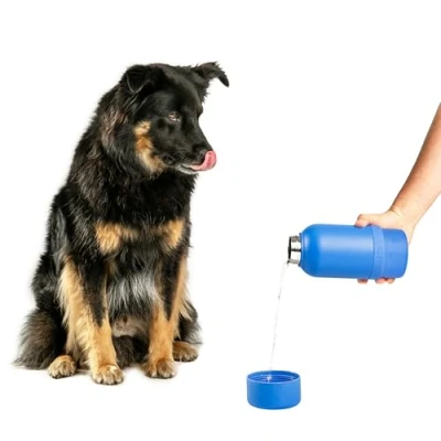 On-The-Go Water Bottle: Equipped with a detachable bowl and wide mouth opening, this travel water bottle can be used for both humans and their pets. The screw-on bowl easily detaches, providing a convenient drinking solution for your dog on the go Integrated Carabiner Lid: Expertly designed with a seamless carabiner cap that effortlessly clips onto backpacks, car seats, leashes, or serves as a comfortable handle for easy carrying during hikes, walks, and outdoor activities Insulated Stainless Steel: Double wall vacuum insulated stainless steel ensures that both you and your pup enjoy refreshingly cold water, no matter where your adventures take you. Designed for easy care, simply toss it in the dishwasher for easy cleaning. Top Rack Dishwasher Safe. Hand Wash Bowl Generous Capacity: With a 32 oz/950 ml capacity, there's plenty of water to keep both you and your furry friend hydrated throughout the day. Our leak-proof design ensures no spills or messes, keeping your belongings dry and your water where it belongs Travel-Friendly: Compact and travel-friendly design makes it perfect for hiking, camping, or any on-the-go activity with your pet. Modern and stylish, available in a range of colors including blue, green, yellow, and charcoal, adding a touch of flair to your outdoor gear. Holds 32 oz