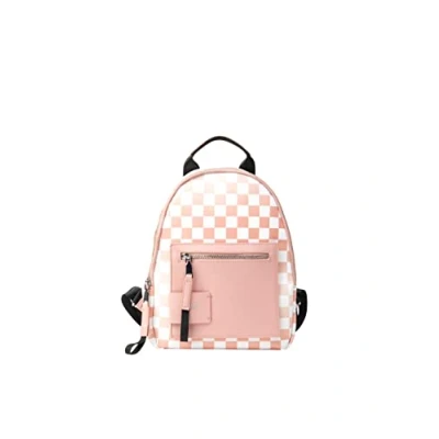 Plaid Backpack Made of durable material Adjustable carrying straps Small handle Zip pocket on the front