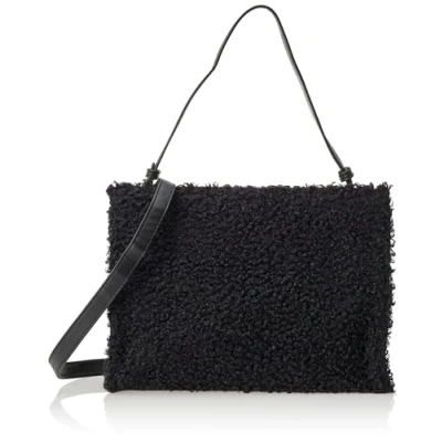 faux leather handbag With teddy fur on the front With handle Detachable and adjustable shoulder strap Textile interior