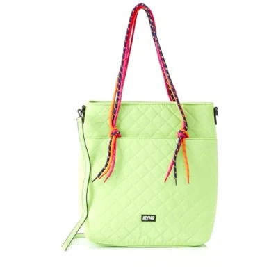 Faux leather shopper bag Quilted diamond pattern Shoelaces as carrying strap Long adjustable carrying strap Textile inner lining with side pocket