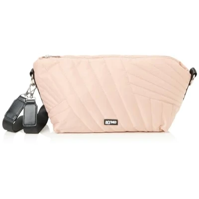 Faux leather shoulder bag Padded and quilted Rubberised logo badge Adjustable and removable strap Textile inner lining with side pocket