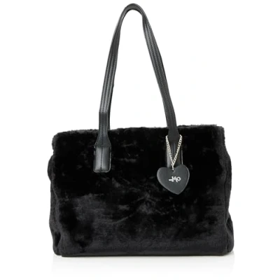 Faux Fur Bag Zip closure Logo heart pendant Interior zip pocket Medium length handle