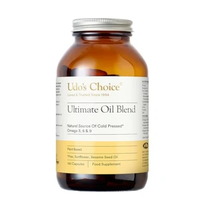 COMPLETE PLANT-BASED OMEGA 3 6 9 SUPPORT Balanced blend of vegan Omega 3, 6, and 9 from cold-pressed seed oils including flax, sunflower, and evening primrose. Supports heart, brain, skin, joints, and hormonal balance with a clean source of essential fats for daily health and vitality. IDEAL 2:1 RATIO OF OMEGA 3 TO 6 Formulated to provide a 2:1 ratio of Omega 3 to Omega 6, aligning with expert recommendations to help rebalance modern diets. ALA and LA support cholesterol levels, immune health, energy metabolism, and healthy cell structure across the body. HEALTHY FATS FOR WHOLE-BODY WELLBEING Rich in essential fatty acids that nourish every cell and contribute to cholesterol balance, mental clarity, hormonal harmony, and skin hydration. Also supports normal growth and development in children when taken daily as part of a healthy diet. CONVENIENT CAPSULE FORMAT – NO REFRIGERATION NEEDED Easy-to-swallow vegan capsules provide a no-fuss way to get your daily omegas—ideal for travel or busy lifestyles. Same award-winning oil formula as the Udo’s liquid blend, but in a portable, heat-stable format that fits any routine. COLD-PRESSED FROM PREMIUM ORGANIC OILS Crafted from organic flaxseed, sunflower, sesame, evening primrose, oat germ, rice germ, and coconut oils. Cold-extracted under oxygen-free conditions to protect delicate nutrients. Non-GMO, gluten free, dairy free, and made without additives. SUITABLE FOR VEGANS AND VEGETARIANS Capsules are 100% plant-based and contain no fish oil or animal derivatives. Ideal for vegan, vegetarian, and flexitarian lifestyles seeking a clean, ethical source of Omega 3, 6, and 9 to support long-term health and balanced nutrition.