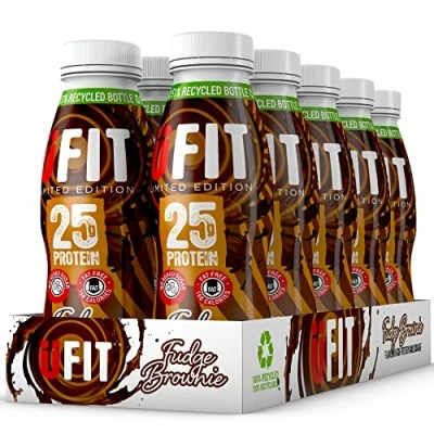 UFIT High 25g Protein Shake Fudge Brownie Flavour Fat Free No Added Sugar Ready to Drink 10 x 330ml (Packaging May Vary)