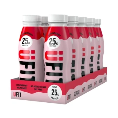 UFIT High 25g Protein Shake Strawberry Flavour Fat Free No Added Sugar Lactose Ready to Drink 10 x 330ml (Packaging May Vary)