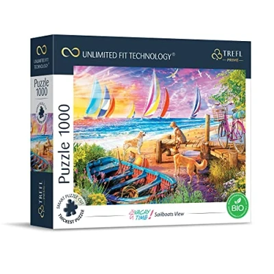 Puzzle Trefl Prime UFT 1000 pieces, ideal for puzzle lovers, puzzles with special, irregular shapes, made from thickest cardboard The finished picture measuring 683 x 480 mm shows sailing boats before sunset. The graphic artist is Angelo Bonito. You can move, spin it and combine it with other puzzles in the Prime UFT series of the same size to create a large collage All plastic components used to pack the product are compostable and biodegradable. Great memory training, development of manual skills, concentration, patience and perception training A unique gift for puzzle enthusiasts, adults and children aged 12 and over, Manufacturer: Trefl