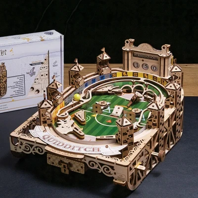 Step into the magical realm of Quidditch with the Harry Potter Quidditch Pinball Wooden Construction Kit, an enchanting 3D puzzle that brings the thrill of this beloved wizarding sport right to your home. Featuring a vibrant playing field adorned with stunning graphics, you’ll love launching Quaffles, knocking down targets, and catching the elusive Golden Snitch to score big - all while basking in the nostalgic vibes of Hogwarts. With 402 intricately designed pieces, this kit is ideal for anyone aged 14 and up, making it an excellent gift for adventurous teens and dedicated Potterheads. Not just a visual delight with its eight elevated viewing platforms and a functional scoreboard, it offers hours of engaging playtime for solo players or spirited competitions with mates. Experience the excitement as you trigger flippers, bumpers, and obstacles while defending your rings and aiming for that unbeatable 150-point win! Your Quidditch adventures come with the assurance of craftsmanship; this officially licensed Ugears masterpiece is built to last, ensuring countless matches and memorable moments. Whether you're crafting it in style or displaying it as a unique piece of Harry Potter merchandise, this interactive game promises creative fun, educational play, and a dash of whimsy to your daily routine. Score your own piece of the magic today!