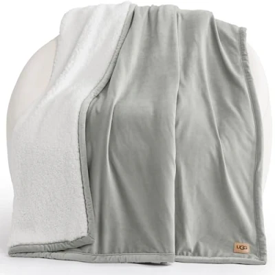 UGG 01465 Bliss Sherpa Fully Reversible Throw Blanket for Couch or Bed Machine Washable Easy Care Soft Plush Luxury Oversized Accent Blankets, 70 x 50 Inch, Seal