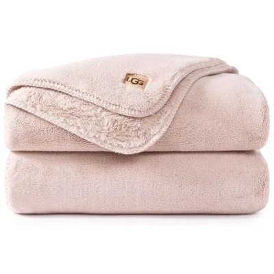 UGG 11065 Whitecap Plush Flannel Oversized Reversible Fleece Throw Blanket Comfortable Lightweight Cozy Hotel Style Home Decor Soft Luxury Machine Washable Blankets, 70 x 50 Inch, Quartz