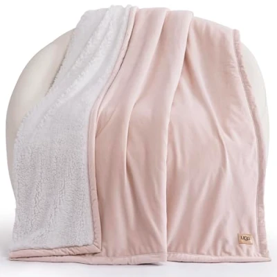 UGG 23852 Bliss Sherpa Fully Reversible Throw Blanket for Couch or Bed Machine Washable Easy Care Soft Plush Luxury Oversized Accent Blankets, 70 x 50 Inch, Quartz