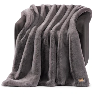 UGG Euphoria Plush Fur Reversible Throw Blanket, Charcoal