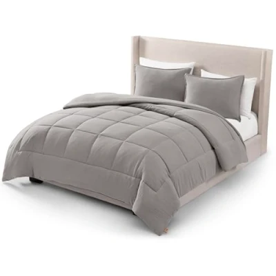 COMFORTER SET DIMENSIONS - The UGG Leonora full bed comforter set measures 90 inches by 90 inches and includes two 20 inches by 26 inches pillowcases for standard full and queen size beds; also available in Twin or Twin XL, King size. Full/Queen Comforter Set - Leonora down alternative comforter features a box stitch design for even filling, ensuring lasting warmth and softness. Its all-season weight and elegant silver color make it a must-have full bedding set. PREMIUM COMFORT & DURABILITY - Made with superior materials, this full queen size comforter alternative offers softness and strength. The breathable fabric wicks away moisture, while reinforced seams enhance durability for comfort. HYPOALLERGENIC & SKIN FRIENDLY - Our full queen size comforter set is free from harmful chemicals and dyes, meeting the requirements of STANDARD 100 OEKO-TEX. Made with premium fabrics and sustainable practices, this set is hypoallergenic and cozy. MACHINE WASHABLE - Wash cold, separately, gentle cycle. Use only non-chlorine bleach when needed. Tumble dry low. Do not iron. IMPORTANT: If the item has no unrestricted movement in washer and dryer, please use large capacity commercial machines.