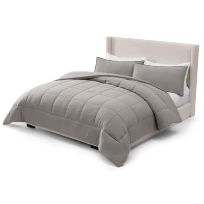 UGG Leonora Comforter Set with 2 Pillow Shams Lightweight Down Alternative Blanket Reversible Cozy Warm All Season Washable and Hypoallergenic Bedding Set, King, Light Grey