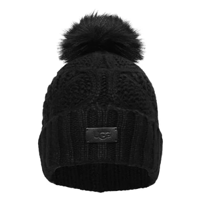 UGG Women's Cable Beanie with Pom, Black, One Size