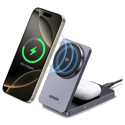 - Power up all your essentials in one go with this UGREEN 2-in-1 wireless charger- It's Qi2 compatible, giving you 15 W of power without cables getting in the way- Tmagnetic holder - It folds down flat and charges via USB-C - perfect for travel or your desk- Built-in protection keeps things safe from overheating, overcharging, or short circuit