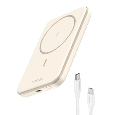 UGREEN Nexode Magnetic Wireless Power Bank Fast Charging, 5000mAh MagSafe Compatible Portable Charger PD 3.0 USB C Battery Pack with iPhone 16/15/14/13/12 Plus/Pro/Pro Max/Mini, White