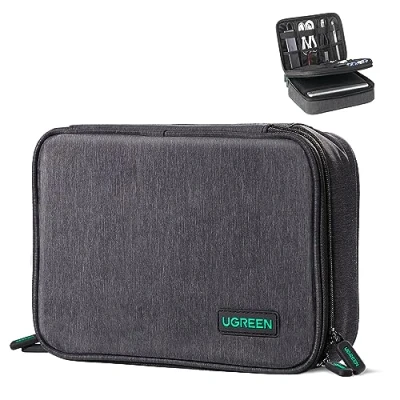 Spacious Storage Space: With a size of 8.46" x 10.35" x 2.75" (215 x 263x 70mm), UGREEN Travel Cable Organizer is suitable for small electronics accessories, like cables, flash drives, and memory cards. The other side is designed to store larger compartments, like power banks, HDDs and tablets, etc. Neatly Stored: This Electronics Travel Organizer keeps all your electronics accessories in place and neatly with the flexible elastic band and practical mesh pocket. Enhanced Protection: This Case Bag is made of linen and polyester fibers, which are environmentally friendly and robust. Furthermore, it safely protects electronics from knocking on each other. Lightweight and Portable: The Tech Pouch is lightweight, easily put it in your backpack or suitcase. Perfect for travel, home, office, business trip, etc. Water-Resistant and Shockproof: This organizer bag is made of water-resistant fabric and shockproof material. All gadgets in this bag are well protected.