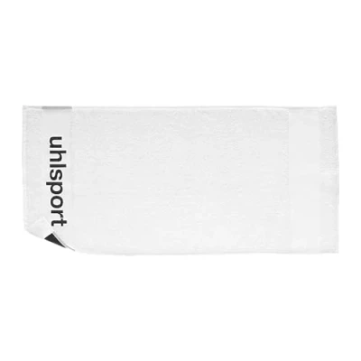 uhlsport Sports Towel and Bath Towel Woven lettering Colour: white For the planet material: 100% organic cotton Sports towel gym for men and women, football towel for children, boys and girls, sports bath towel made of cotton - available in sizes 140 x 70 cm or 100 x 50 cm.