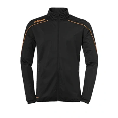 Uhlsport Football Stream 22 Classic Jacket Kids, Black/Fluo Orange, Smartbreathe Pique Brushed Outdoor Sports, Size 24/26